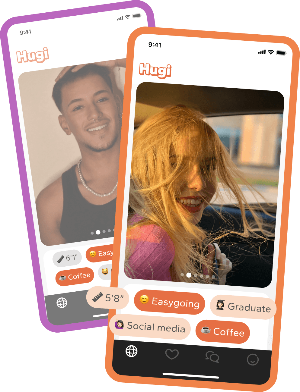 Hugi is more than just a dating app. It is a platform that redefines traditional dating by eliminating repetitive swiping, endless waiting, and shallow interactions. At Hugi, we focus on fostering meaningful connections, allowing you to start conversations based on shared interests and genuine curiosity.